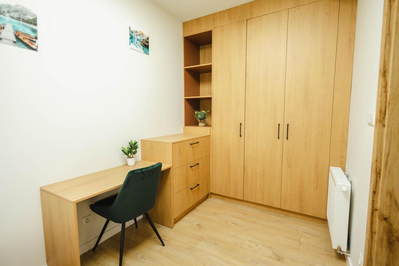 Apartament. This apartment comes with 1 living room, 1 separate bedroom and 1 bathroom with a shower and a hairdryer. In the well-equipped kitchen, guests will find a stovetop, a refrigerator, a dishwasher and kitchenware. The apartment features a washing machine, a seating area, a wardrobe, an electric kettle, as well as a flat-screen TV. The unit has 2 beds. Apartament - 4 osobowy. Powierzchnia pokoju ok.: 50 mkw.